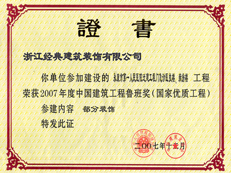 2007年第一人民醫(yī)院魯班獎(jiǎng)...
