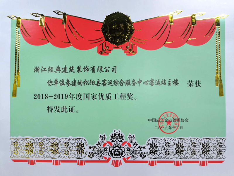 2018-2019國家優(yōu)質(zhì)工程...