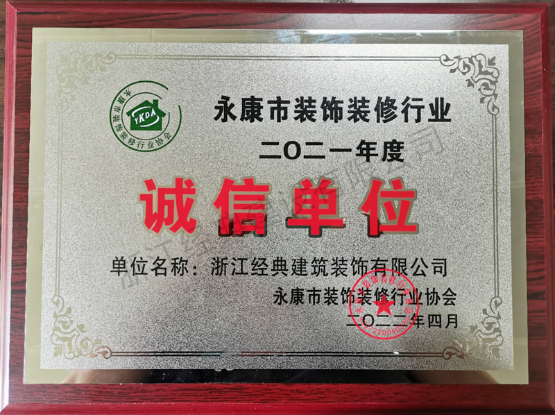 2021年度永康市裝飾裝修誠信...