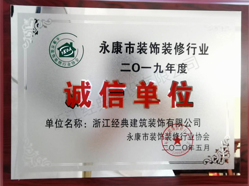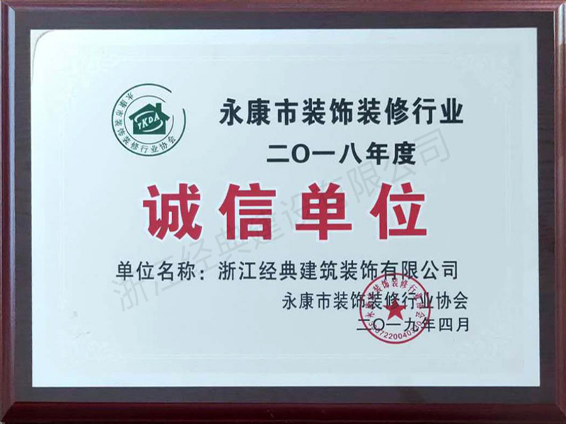 2019年永康市裝飾裝修誠信單...