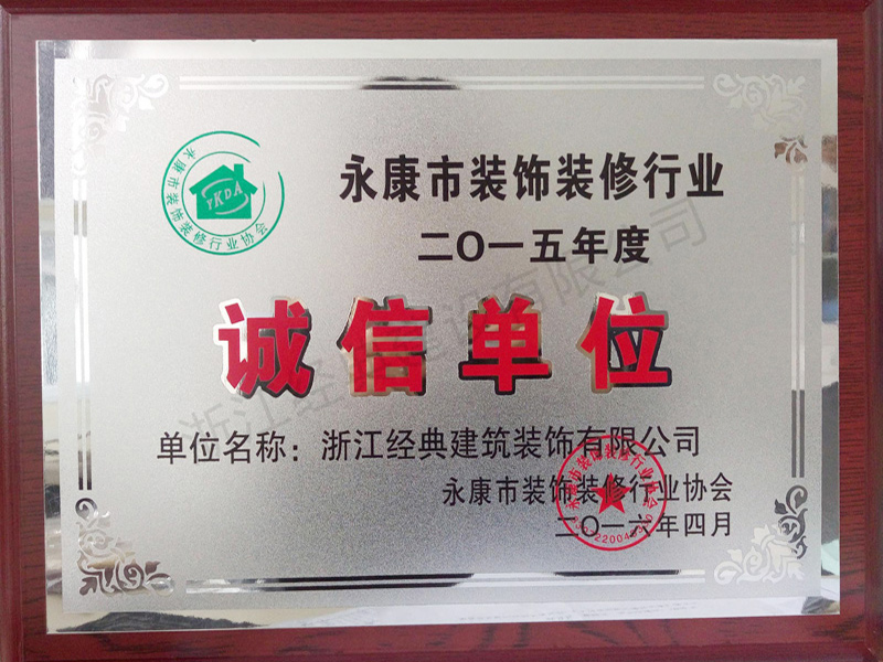 2015年度永康裝飾裝修行業(yè)誠...