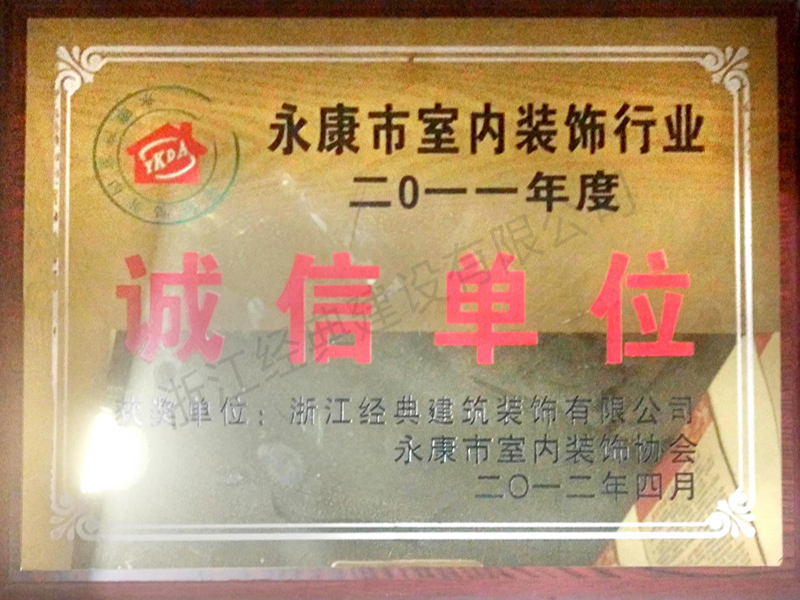 2011年度永康室內(nèi)裝飾行業(yè)誠...