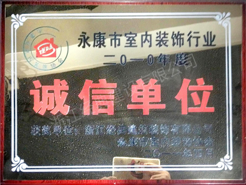 2010年度永康室內(nèi)裝飾行業(yè)誠...