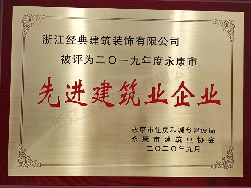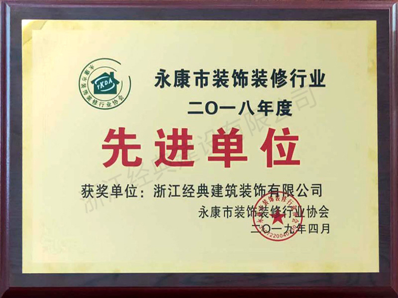 2019年永康市裝飾裝修先進單...