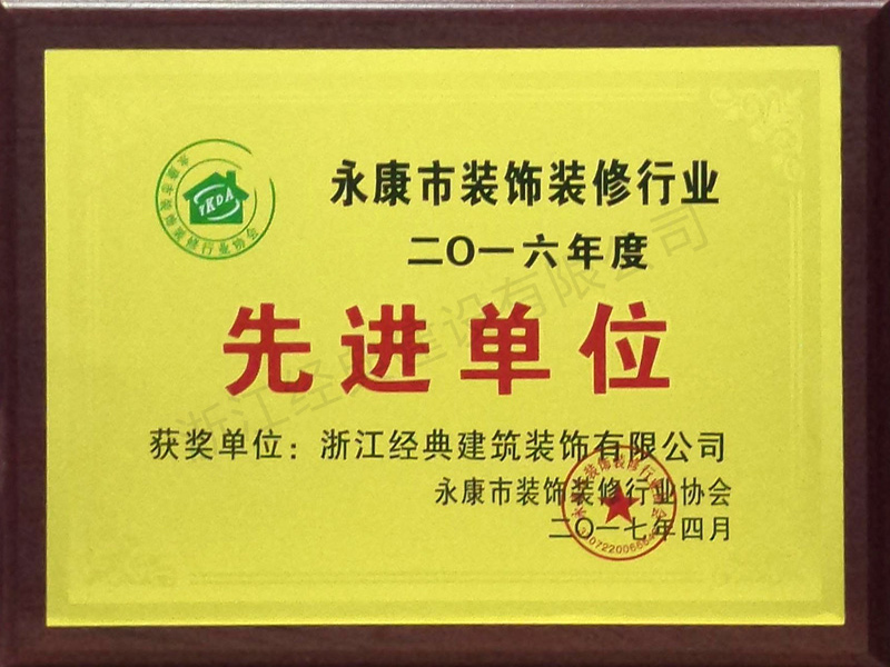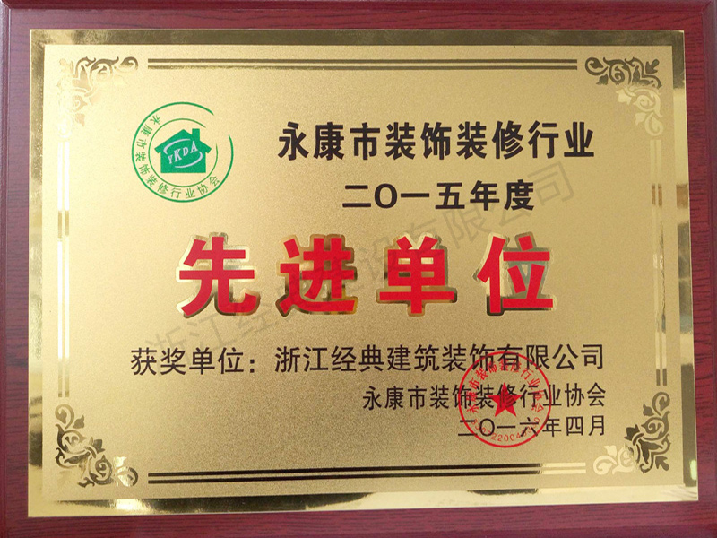 2016永康裝飾裝修行業(yè)先進單...