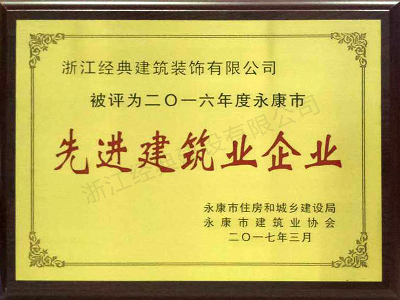 2016年度永康市先進建筑業(yè)企...