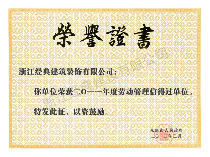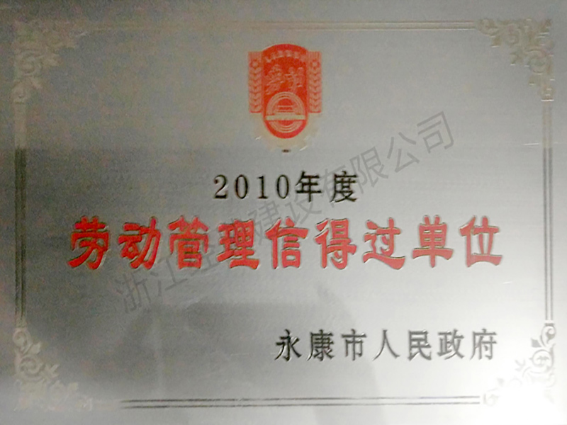 2011年永康市勞動管理信得過...
