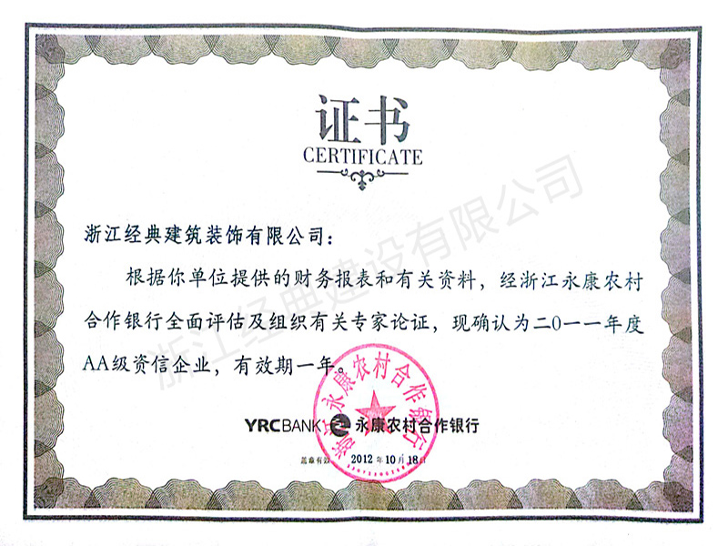 2011年度AA級資信企業(yè)...